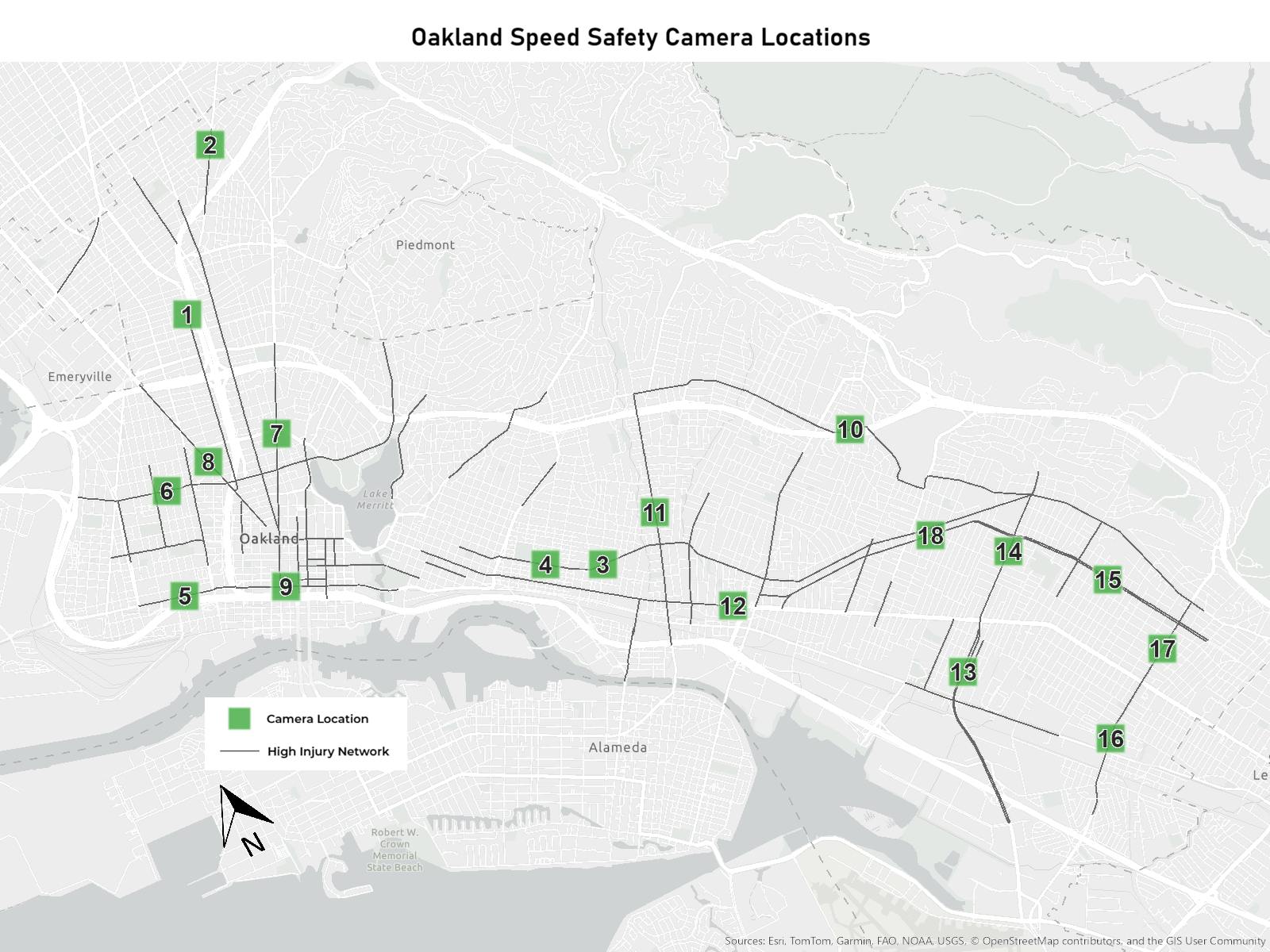 18 Locations of Oakland’s new automated speed cameras.