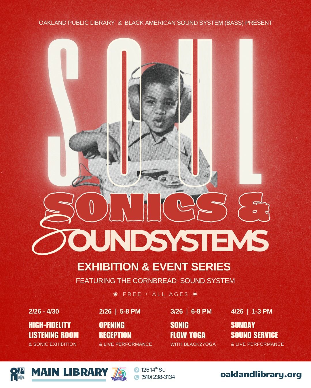 The Oakland Public Library is hosting a brand new exhibition and event series centered around, you guessed it, SOUND. The exhibit features a dedicated Hi-Fi listening room where “sound is experienced.” Opens Thursday through April 30. | Thursday, 5-8pm. Oakland Main Library. See Details →
